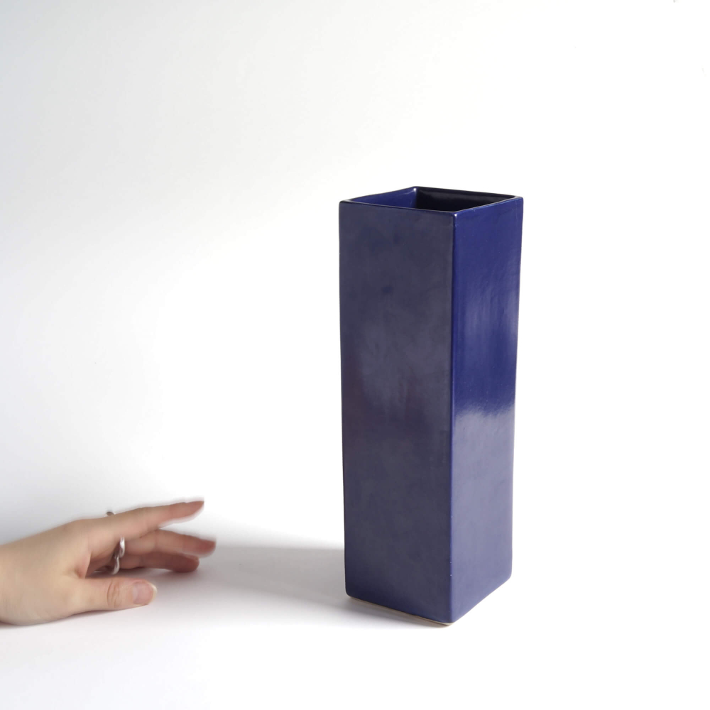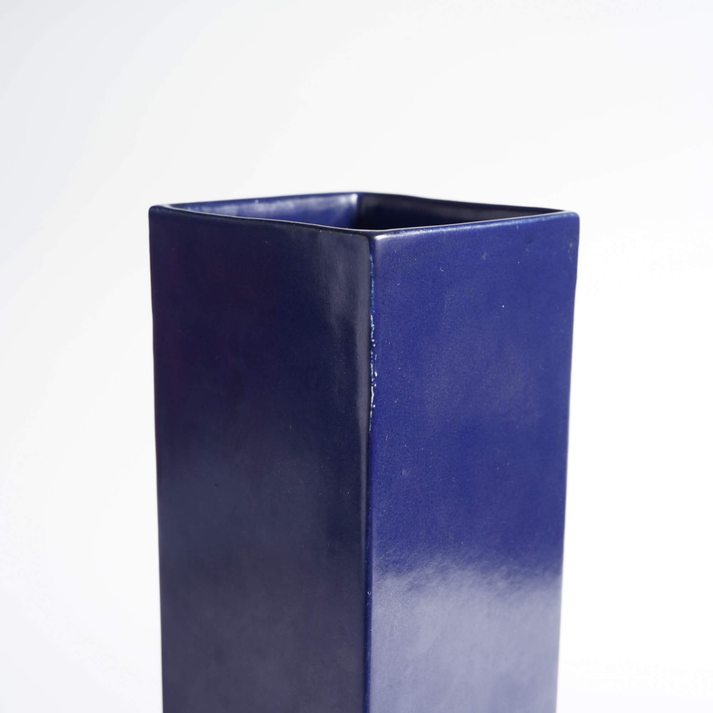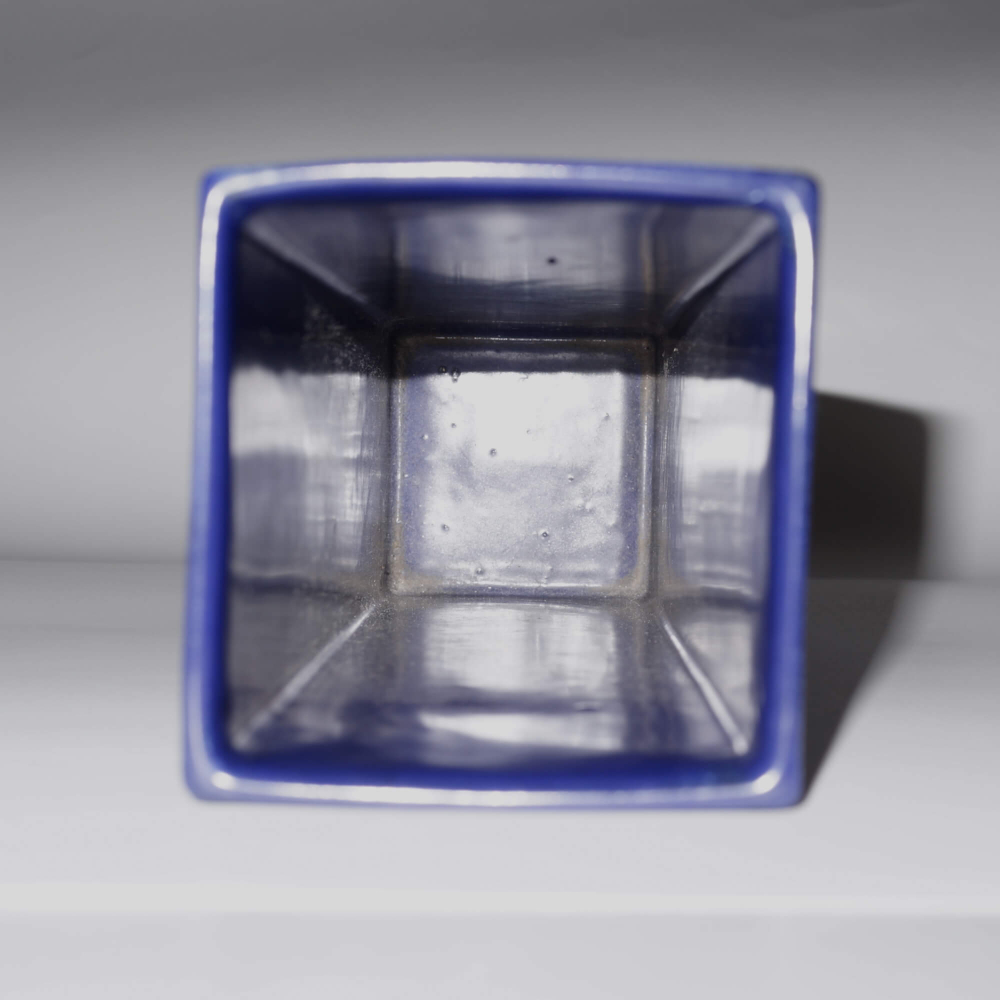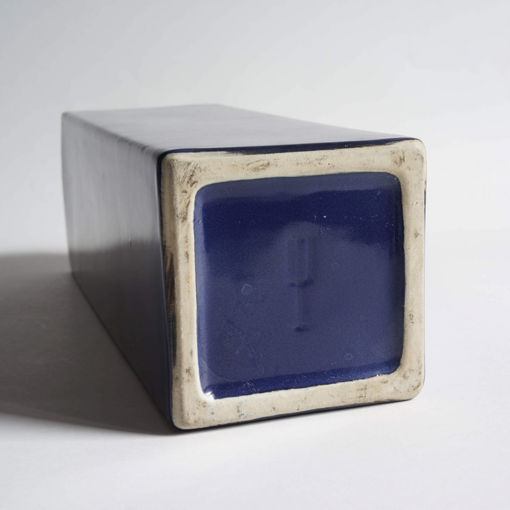 青の単色釉薬で表現されたジオメトリックなこのオブジェは、受ける光により青の濃淡が表れて、2色、3色と、カラフルなオブジェに変身します。ジオメトリックな魅力が異彩を放つ逸品。