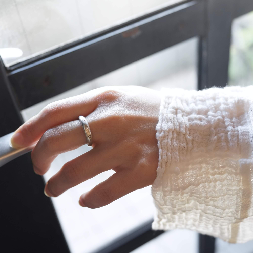 ふっくらと立体的なリングは着用時に指へのストレスがないように設計されているので、着け心地がとても良いもの。