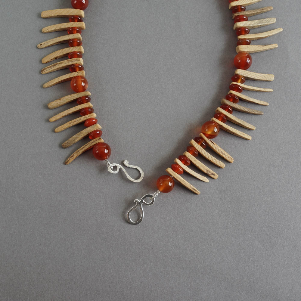 オーガニックで奔放なフォルムのココナッツウッドが繋がれたネックレス。
