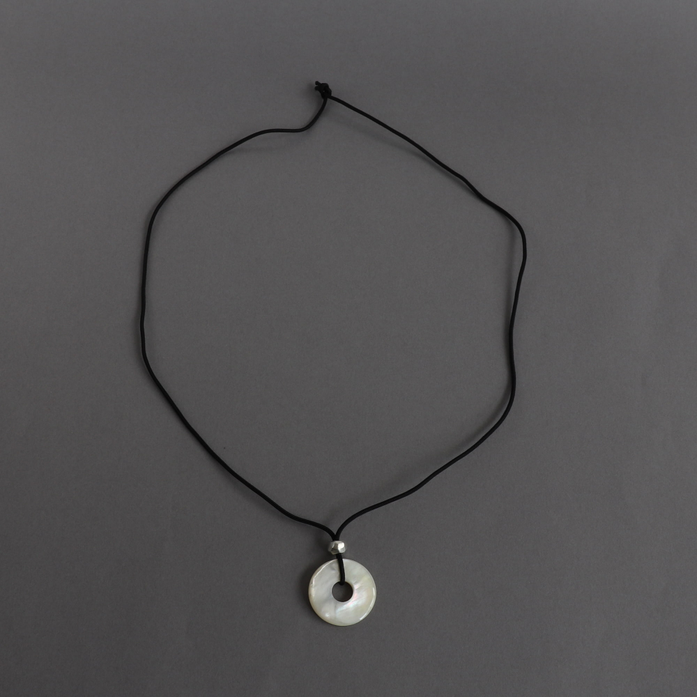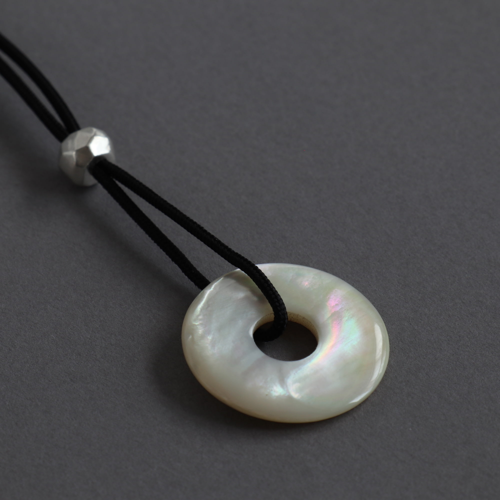 マザー・オブ・パールが表情豊かに優しく光ります。シルバー・パーツをアジャストして自由に着用できるネックレス。