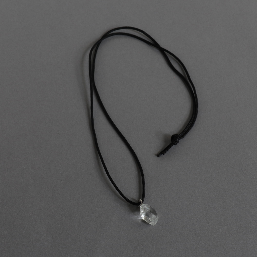 透明度が高いとされるマウンテンクウォーツ(ロッククリスタルとも)は、輝きがより一層シャープ。古い時代からお守りとして重宝される水晶を、カジュアルに装えるのは嬉しいですね。およそ2センチほどの形の良いチャームです。