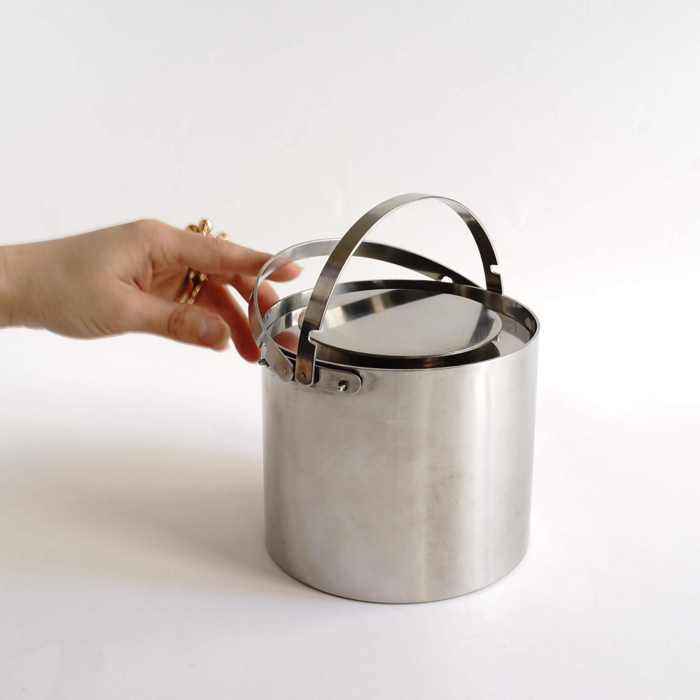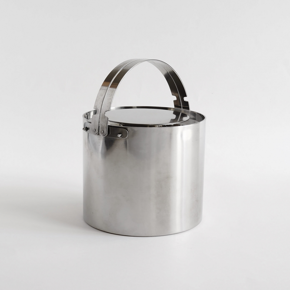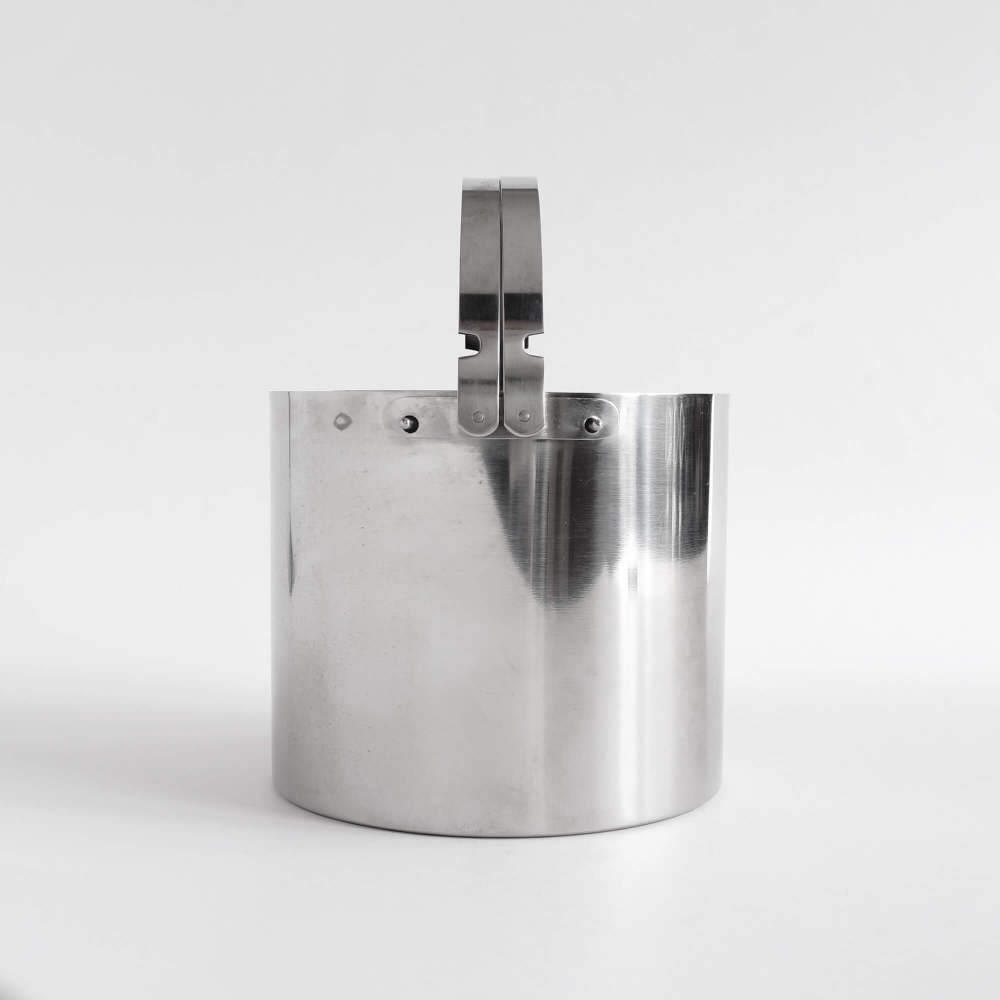 アルネ・ヤコブセンがステンレスという、固く、加工の難しい素材に挑戦を挑んだ傑作“シリンダ・ライン”シリーズ。中でも、このアイスバケットは最高傑作かもしれません。二つのハンドルと本体を接合するパーツが織りなす的確で機能的なデザインは美しく、機能的。ヤコブセンもバウハウスの理念をしっかりと受け継いでいた証なのです。