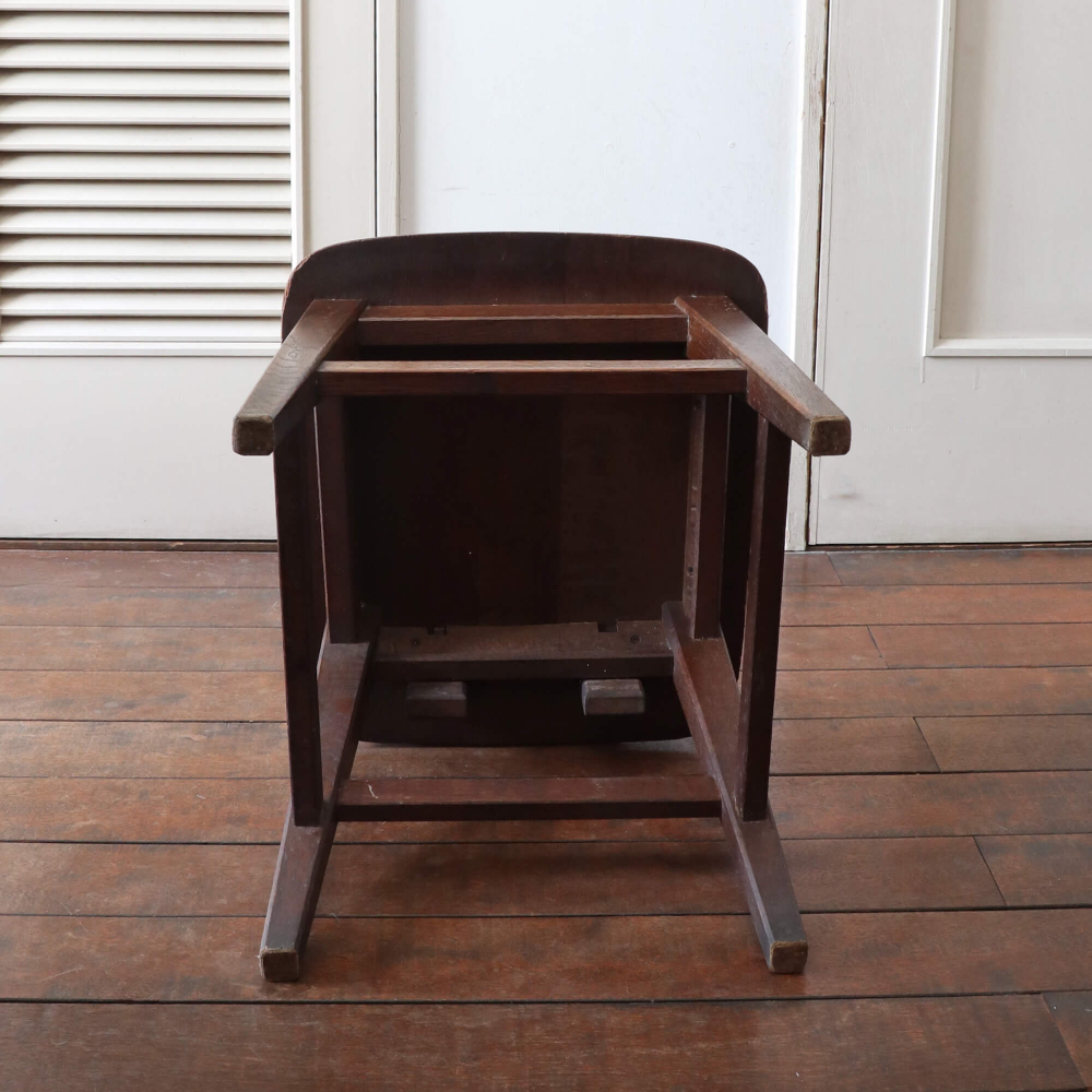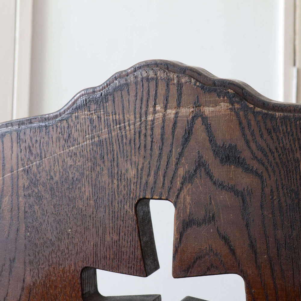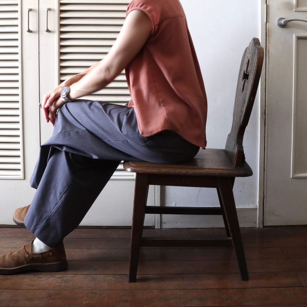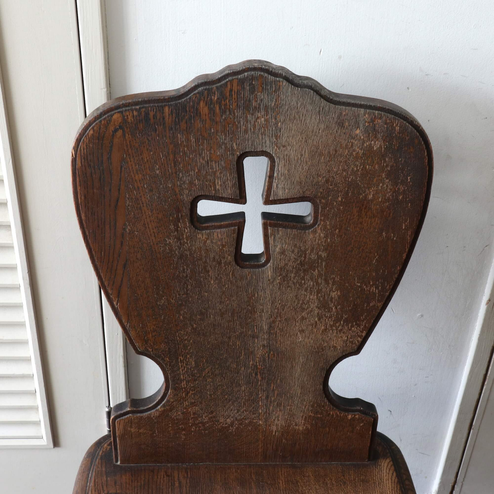 背板に十字のシンボルが穿たれた木製の椅子。なんだか、教会や十字軍をホウフツさせるようなアイコンが際立つ一脚は、立派な日本製のクラフトです。organがあるビルの一階のパスタ屋さんにあった40数年前のものなんです。不特定多数の人が使った歴史が感じられて、捨てがたい魅力があります。