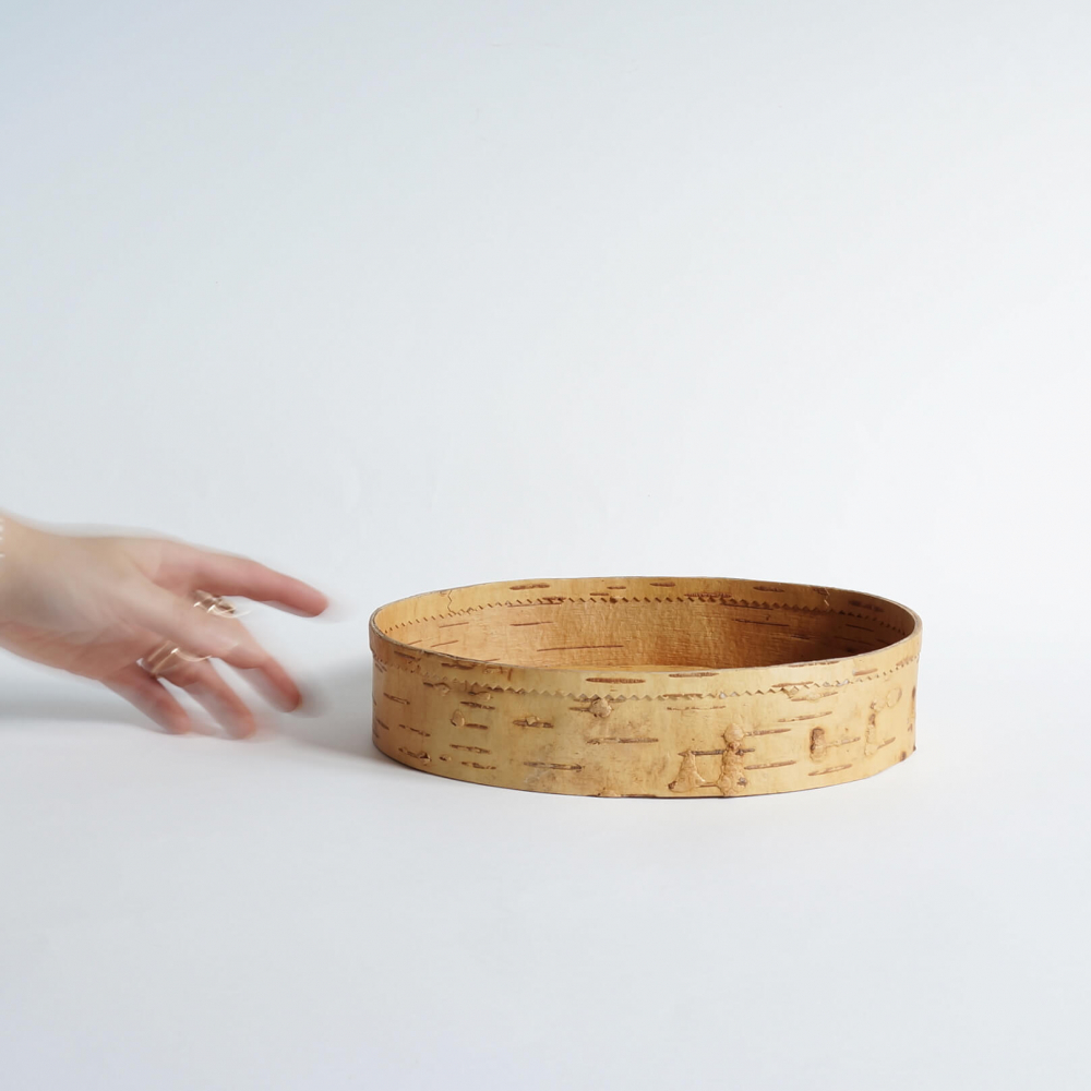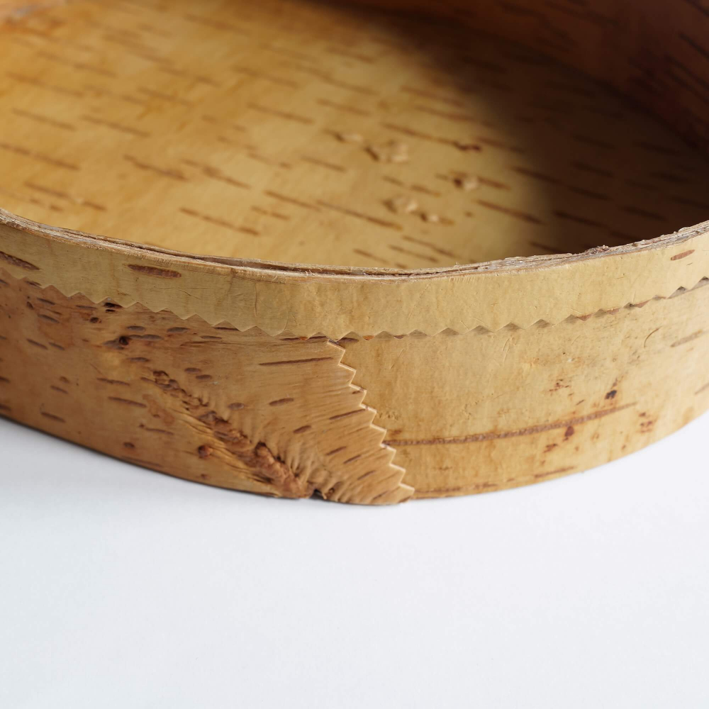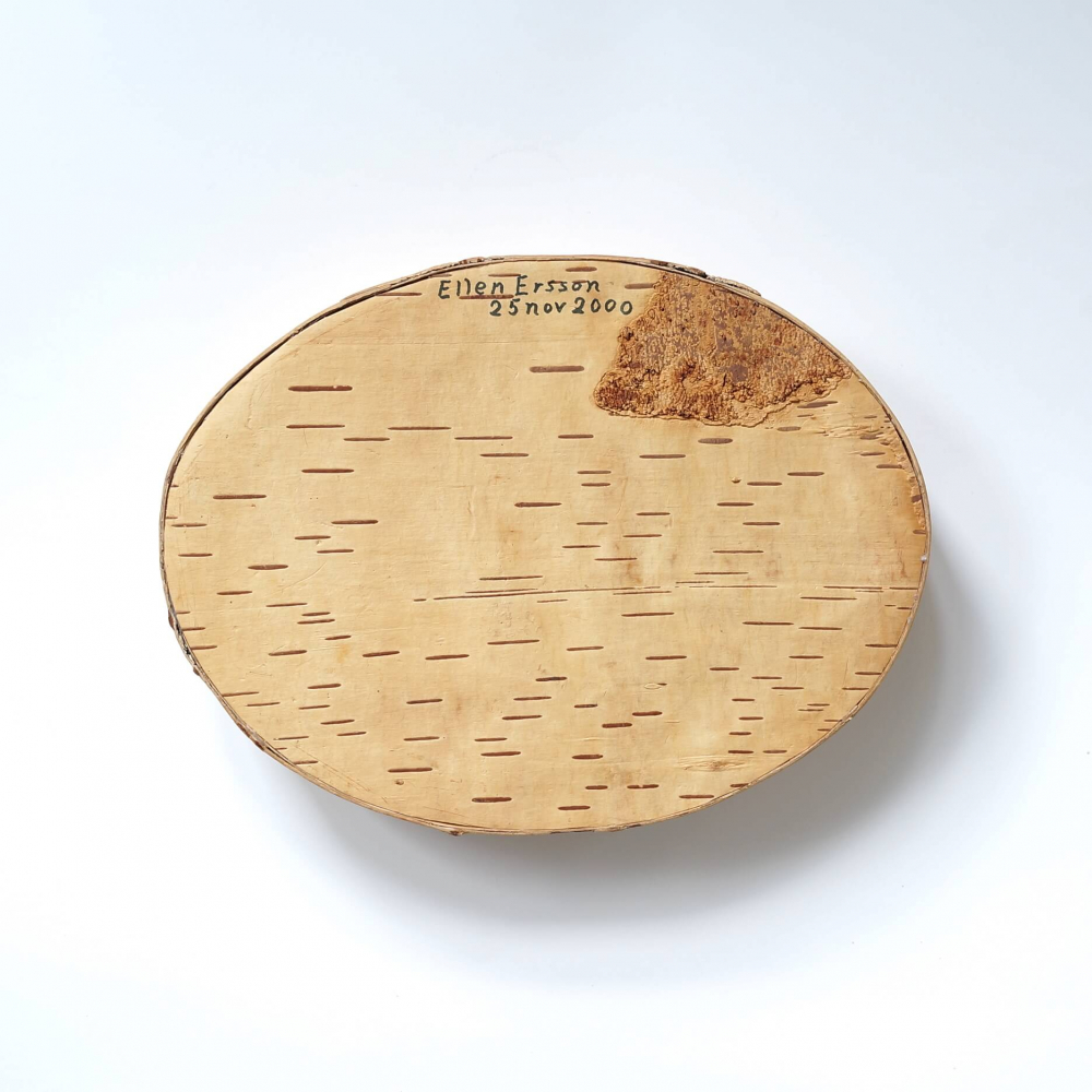 白樺の樹皮の特徴である模様を存分に生かした、小ぶりなオーヴァルトレイです。裏底に残るEllen Eresson, 25 2000の手書きサインが見られて、25年前に作ったエレンさんってどんな人かな、今も元気かな、とつい想像してしまいます。北欧の素朴なフォークロアは、手作りのあたたかさですね。