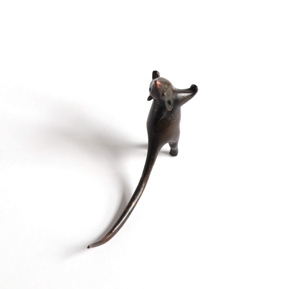 こちらは、錠前ではなく、れっきとしたオブジェです。シンプルで愛らしいウィーンの工房モノと違い、精緻なリアリズムを感じてしまいます。その今にも動き出しそうな気配は、職人の意気込みさえ感じてしまいます。おまけに立ち姿になると、なんだか甘えん坊みたいで可愛すぎます。