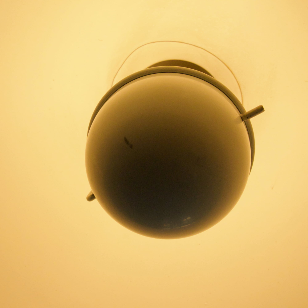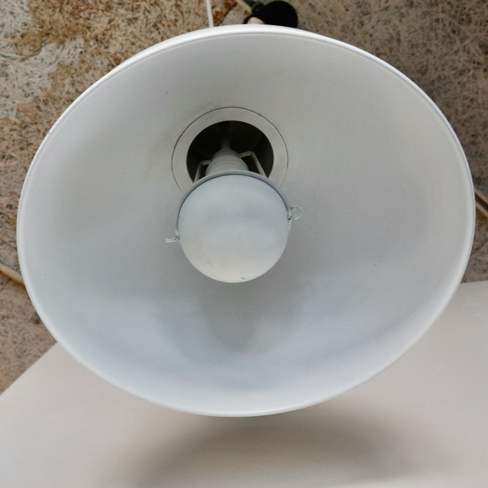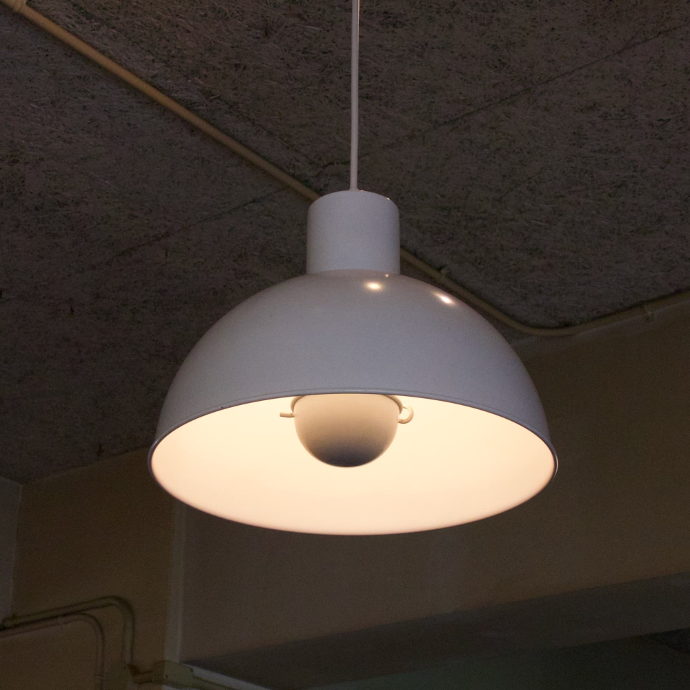 こちらは1960年代に発表されたペンダントランプ"Bunker"。インダストリアルな印象を、ダイニングテーブルにもお似合いなアットホームなデザインに進化させています。光の直射を防ぐ内部の揺れる丸いカップがナイス。半円球をしたメタル・シェードから照らされる柔らかな光に、ホッとしてしまいます。