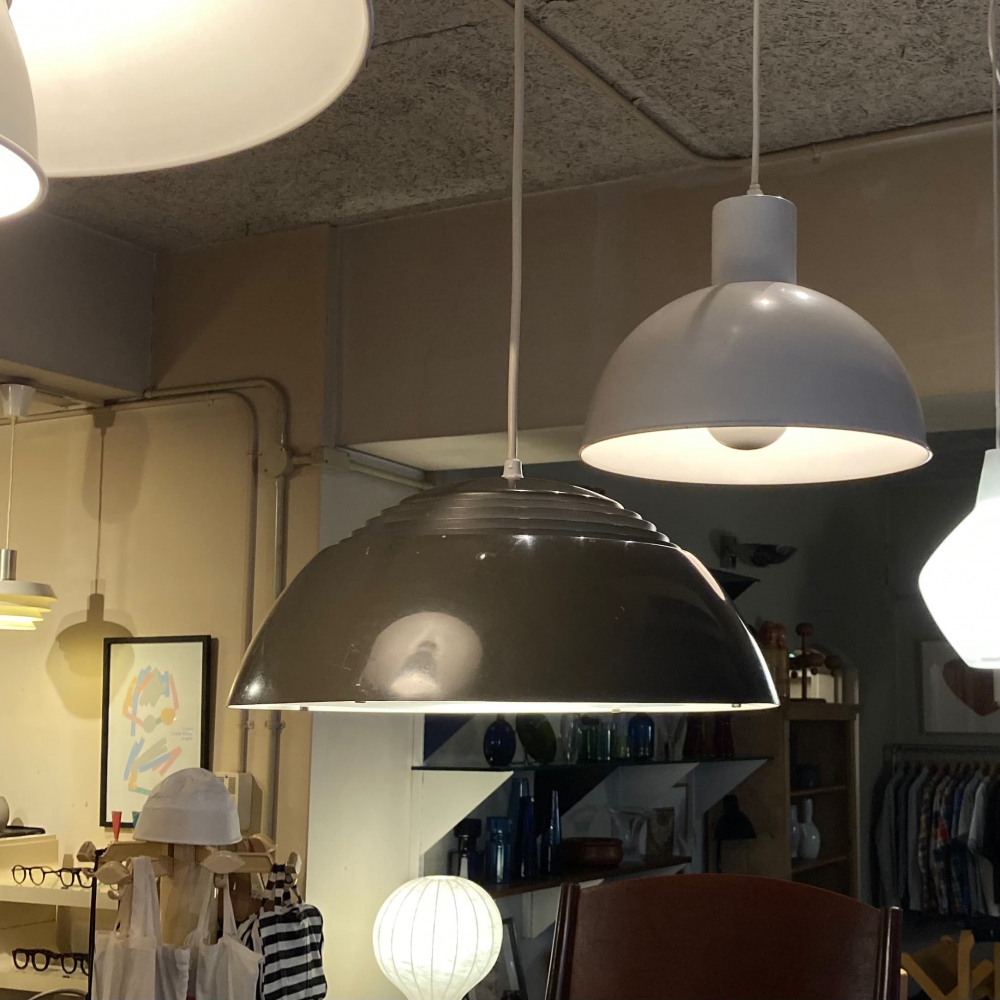 こちらは直径37センチの小型として再設計されたもので、家庭のテーブルでも使いやすいサイズ。この光沢のあるチャコールグレイのシェードは、白と違い、部屋の中でシックなアクセントを漂わせてくれるもので、現在は廃番となっています。