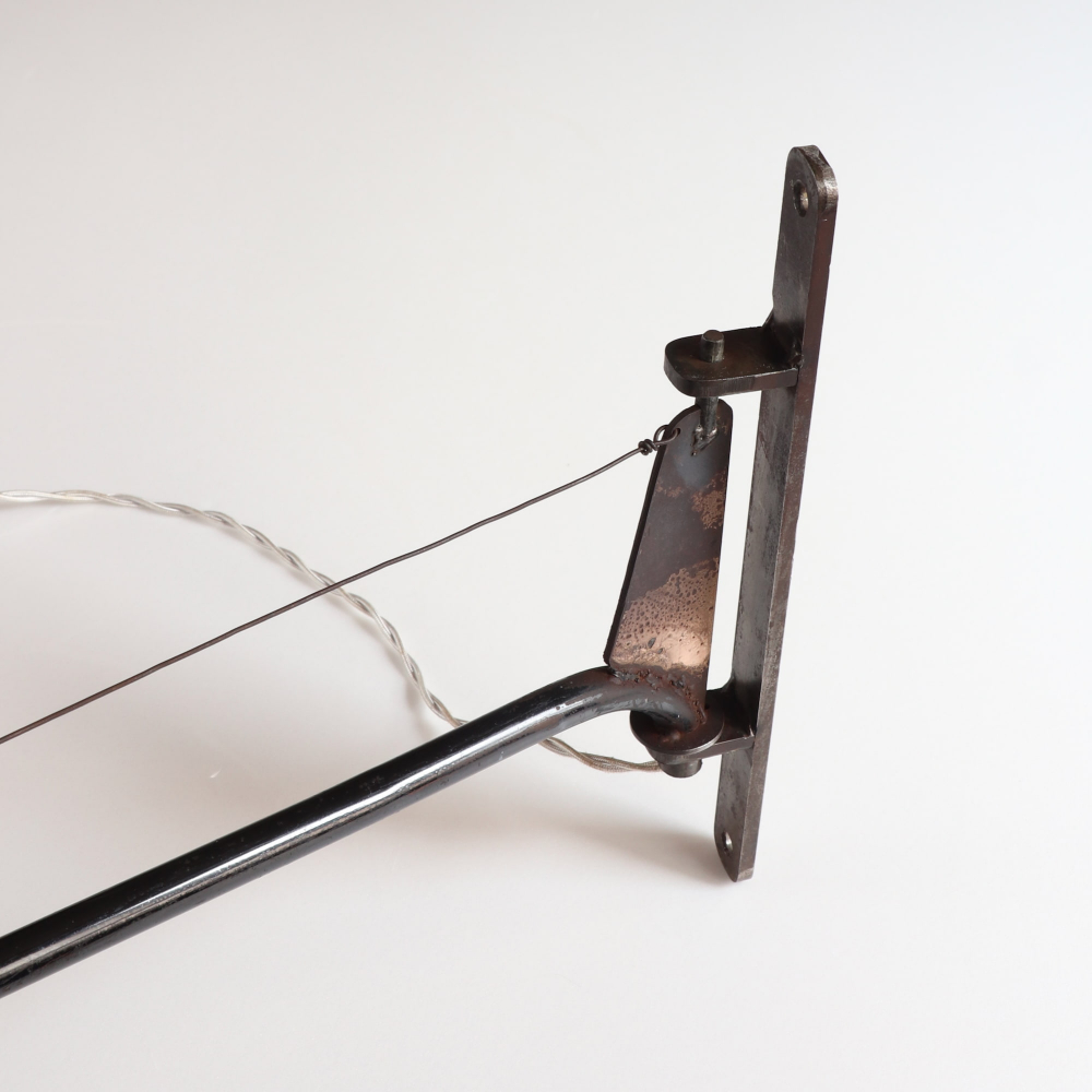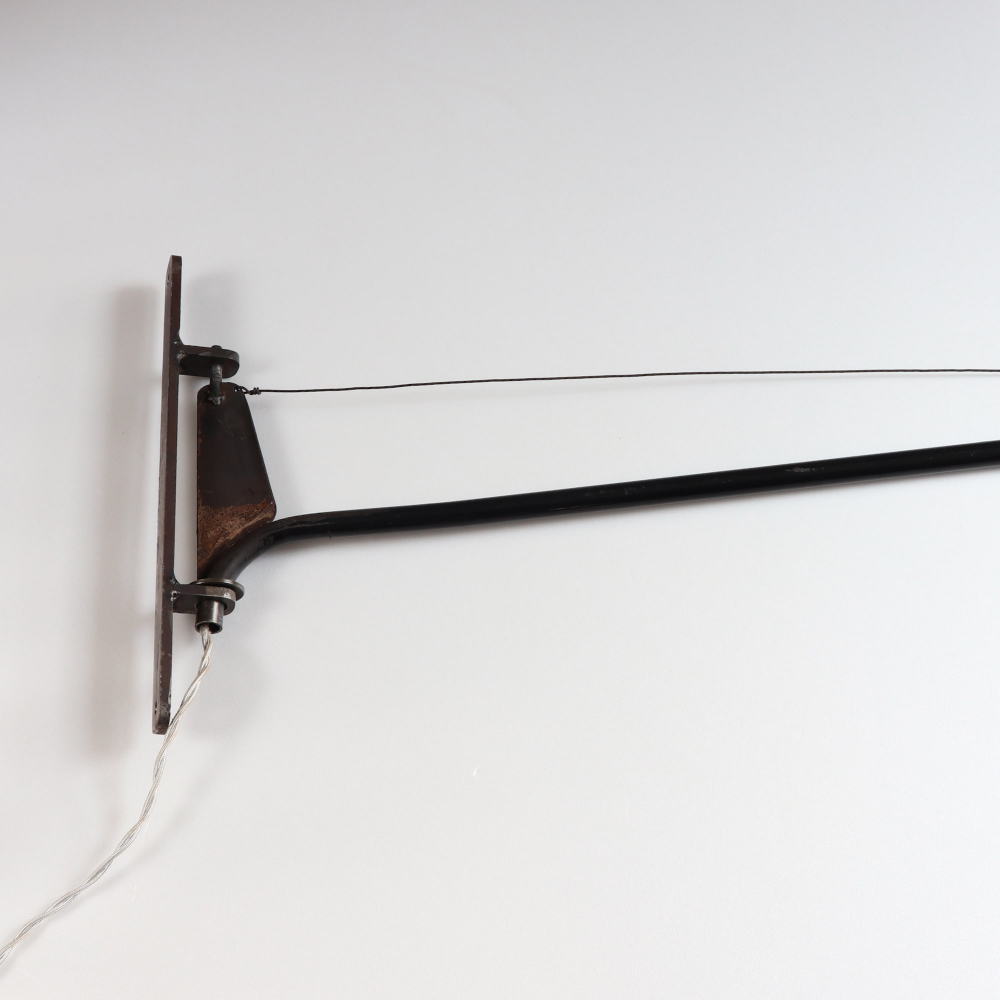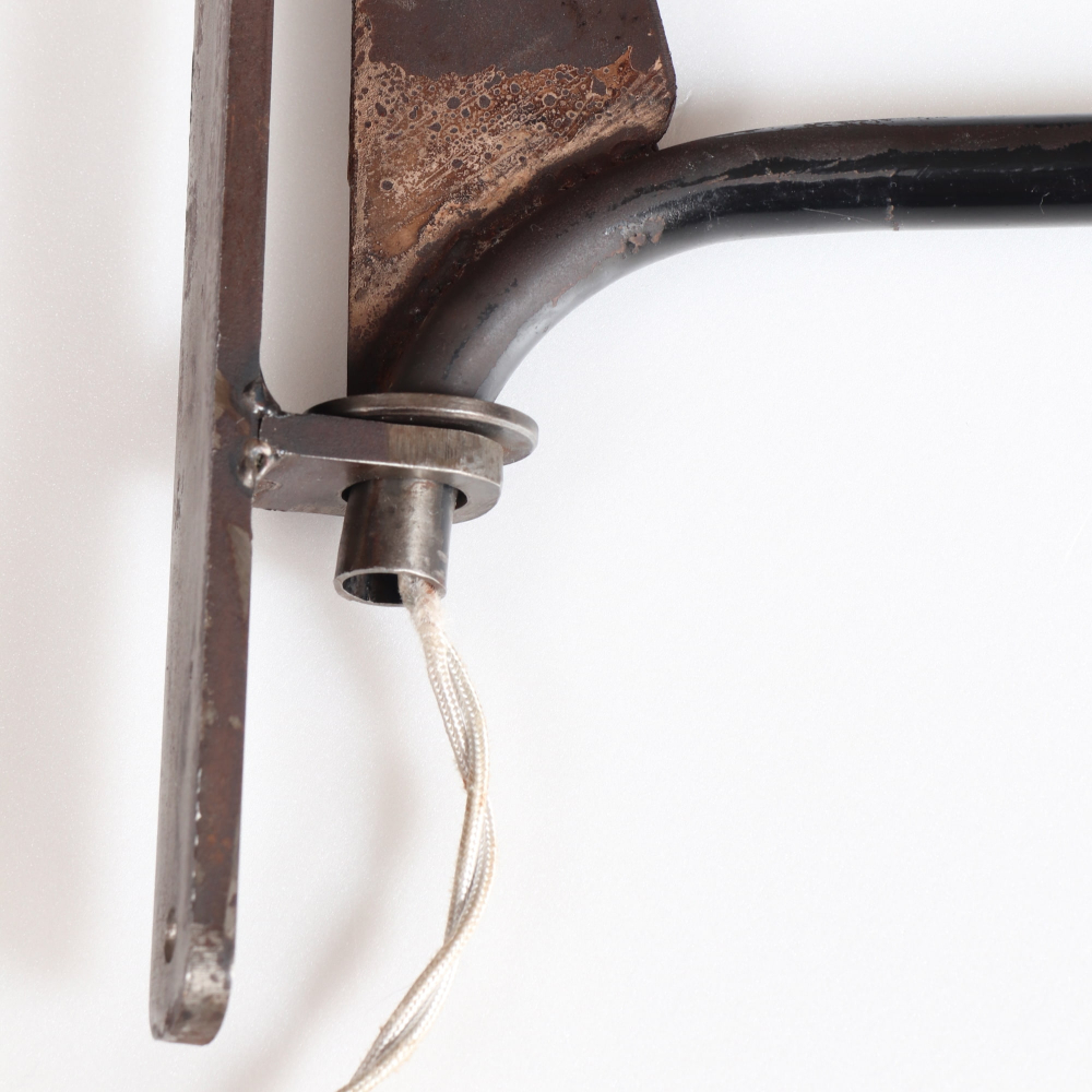 この壁付けのランプは、まるで「装置」のよう。設置場所による「動き」の変化は自由で活発。もともとアール・ヌーヴォーの拠点だったナンシーに生まれ育ったプルーヴェのBlacksmith(金属工芸)、職人としての手腕が見て取れる1950年代のヴィンテージです。