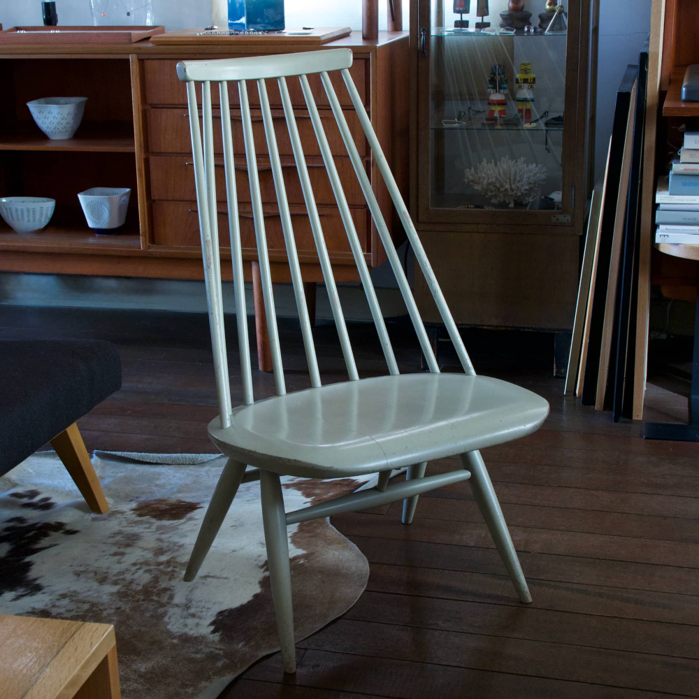 この”マドモアゼル・チェア”は、そんなフィンランドらしい質朴さを、じんわりモダンに昇華した一脚。ル・コルビュジエやアルヴァ・アアルトの元で仕事をしたイルマリ・タピオヴァラならではの作品といえます。