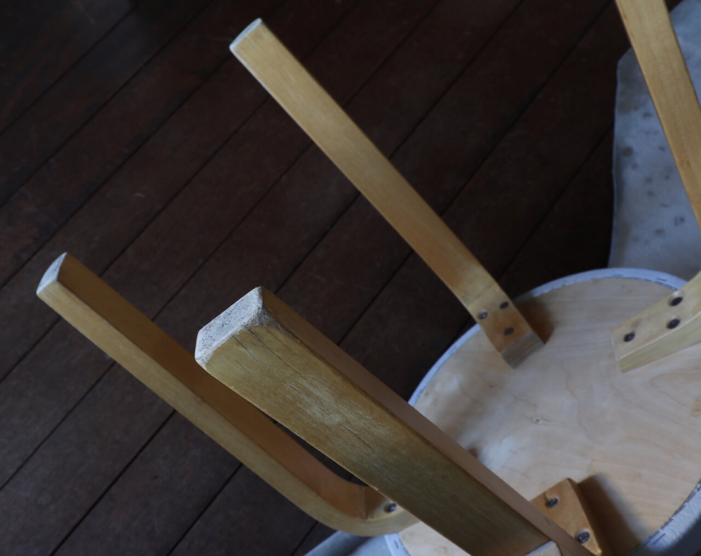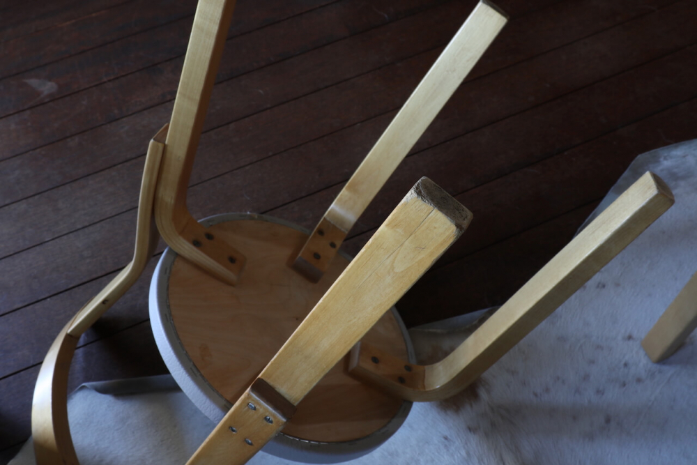 1935年に完成したアアルト設計のヴィープリ図書館では、スツール"No.60"とともに、この椅子のナチュラルバーチのタイプがずらりと並ぶ当時の写真は、とても印象的です。