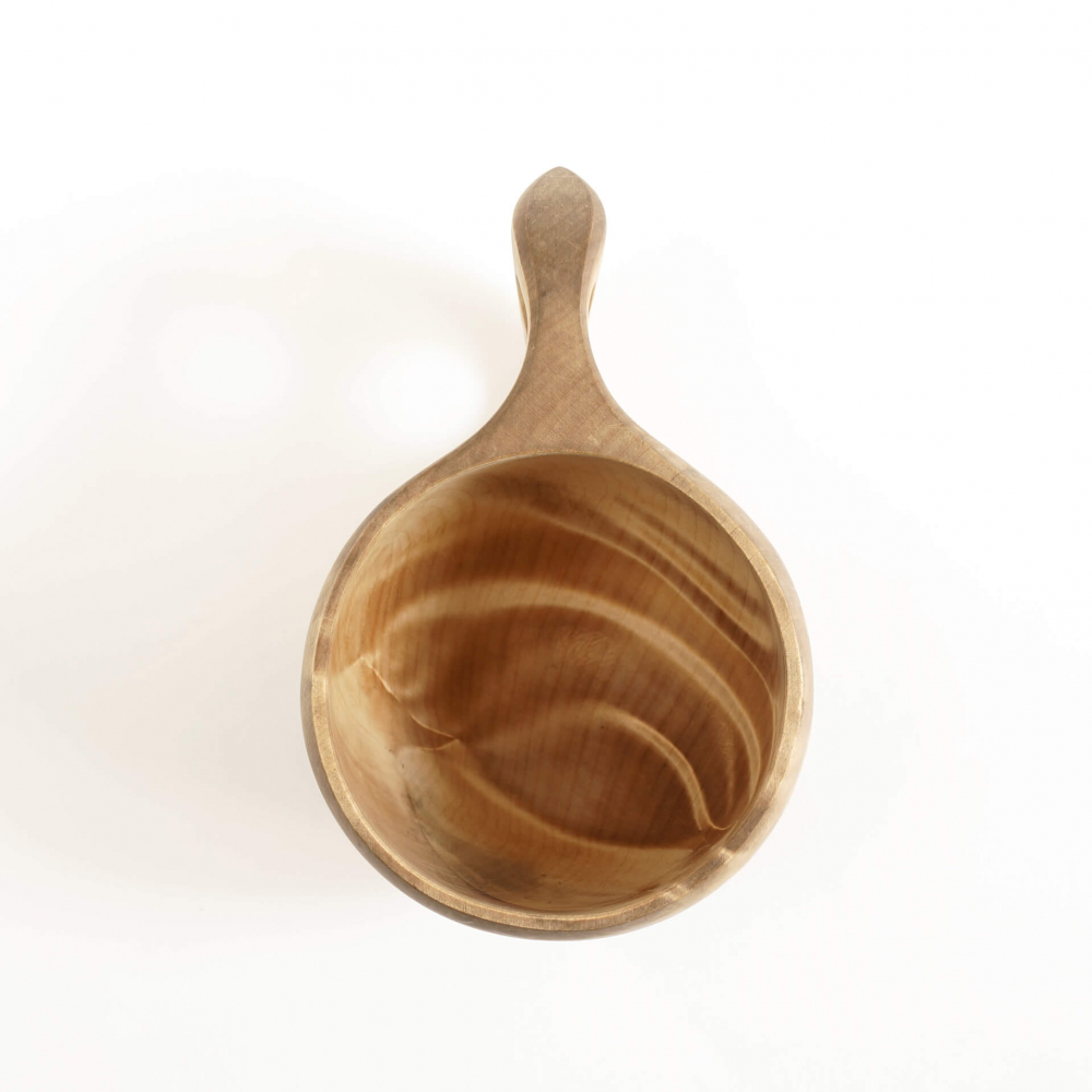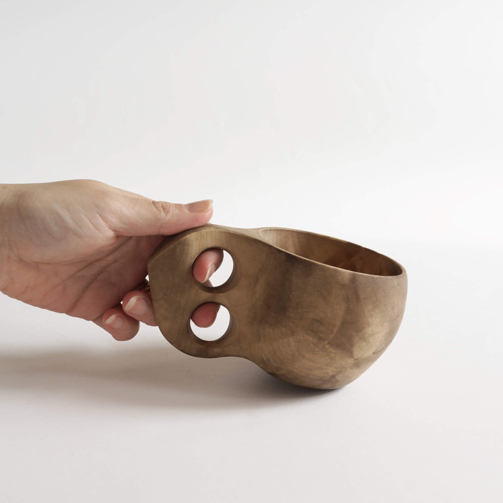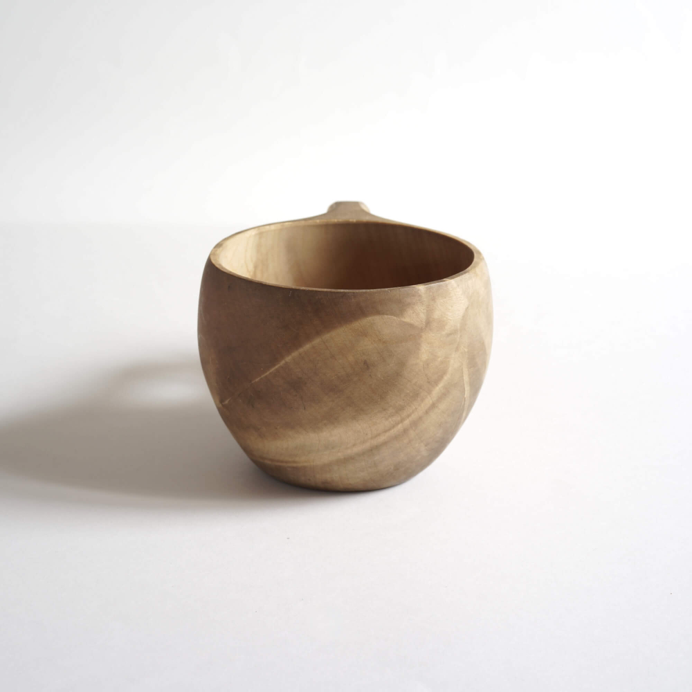模様の出方はひとつひとつ異なり、またその表情もそれぞれに違いがあります。その模様は”オーロラ”と呼ばれているのですが、このククサにある風にたなびくような揺らぎを感じる濃淡はまさに、です。