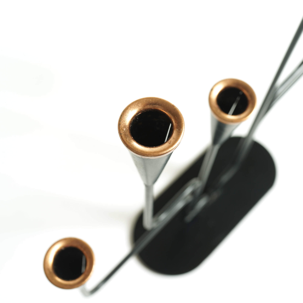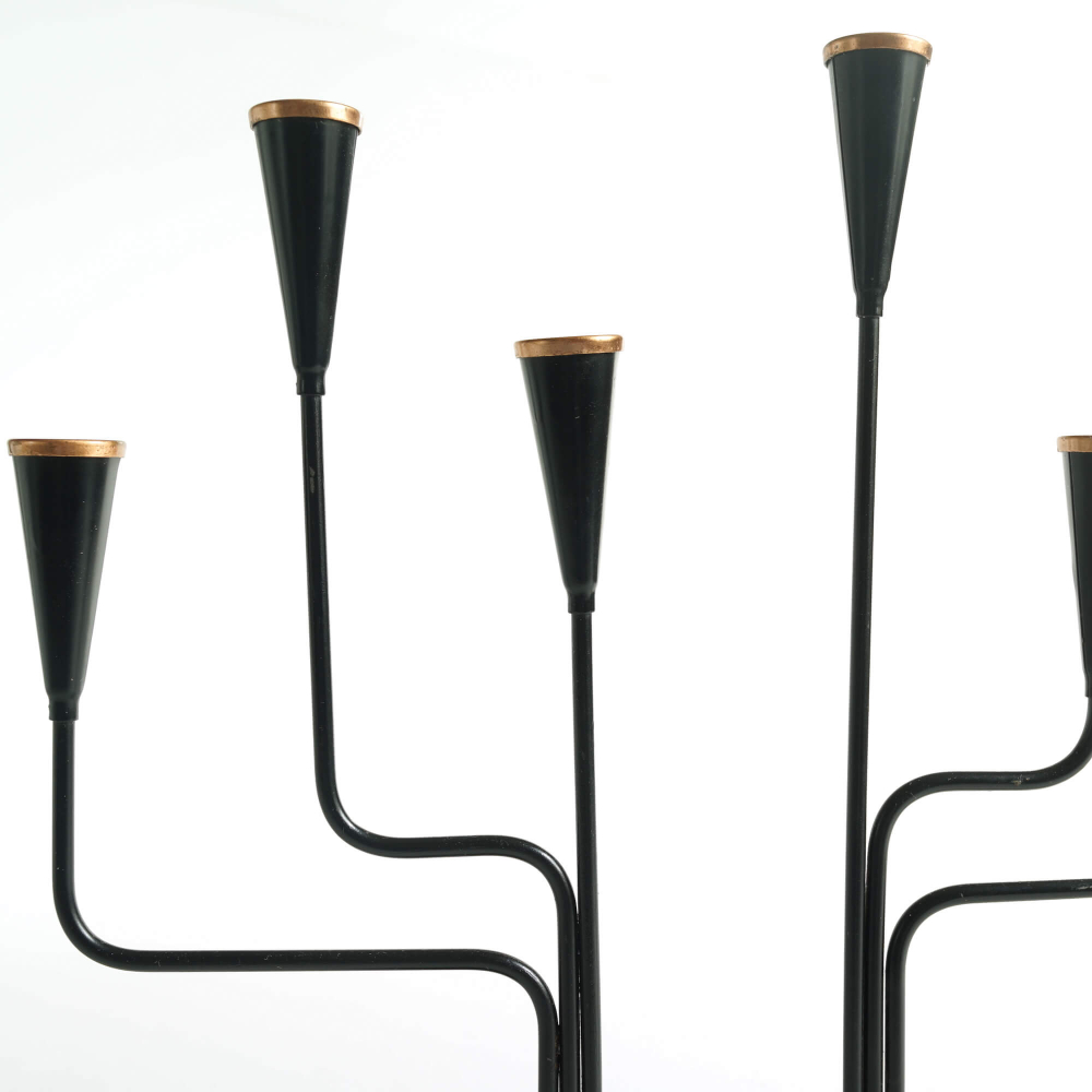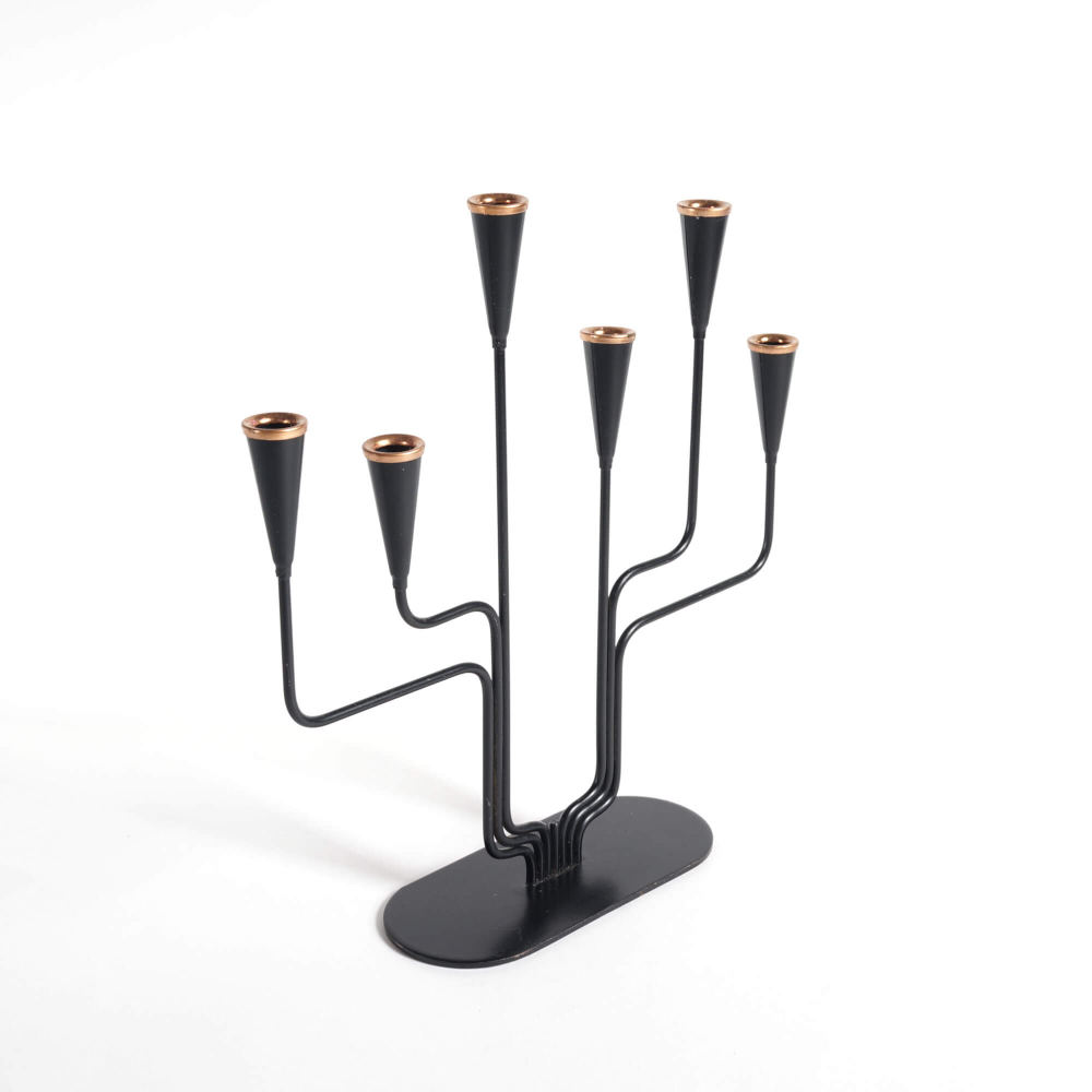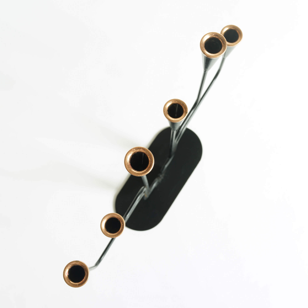 6本の燭台アームは左右対称のデザイン。燭台という「祈りのアイテム」のヴァリエーションの提案として、よく考えられたフォルム。だからなのか、インテリアにも馴染みが良いもの。加えて、こちらは真鍮を用いた同型の燭台と違い、ボディは黒で統一したフォルムなので、より静謐な趣です。
