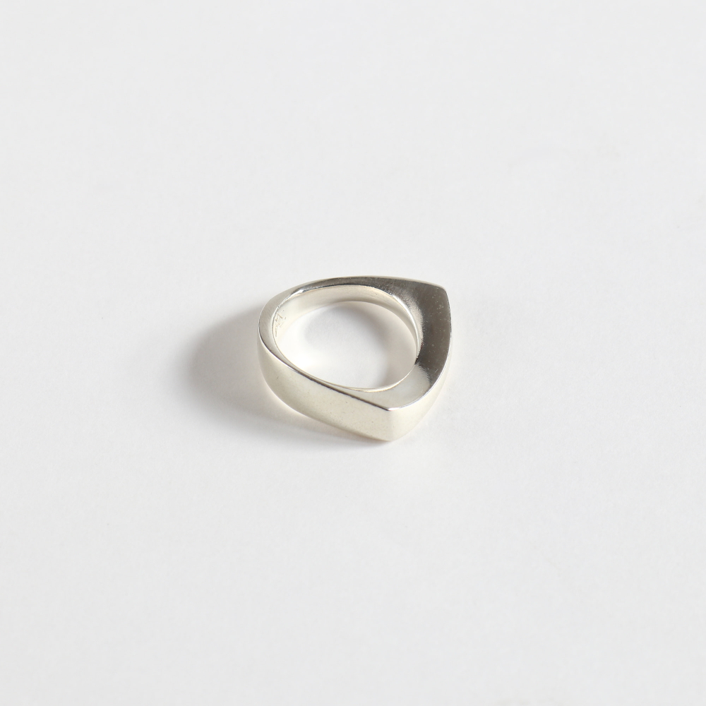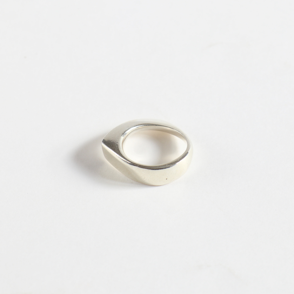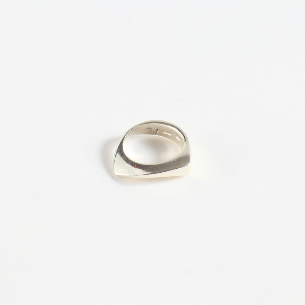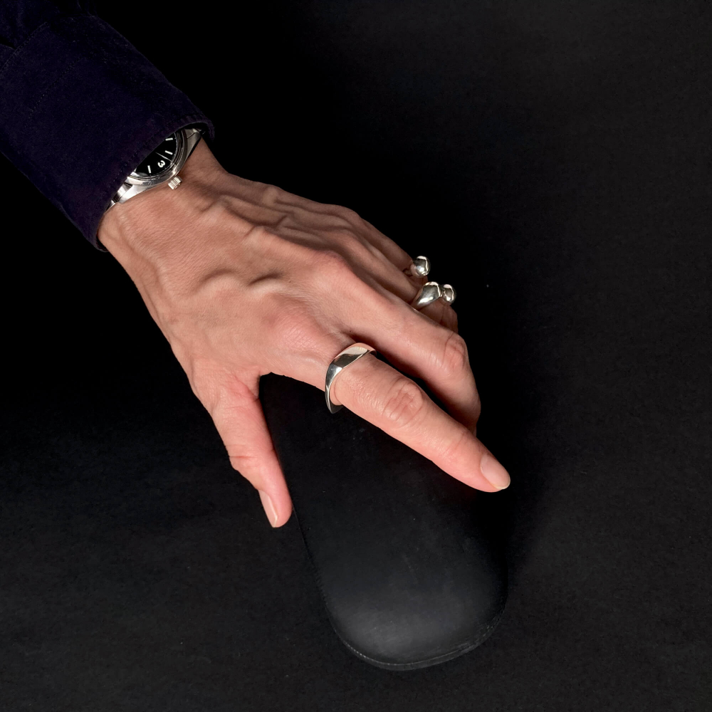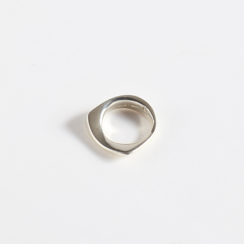 ひんやりとしたシルバーの質感とフォルムが調和するこのリング、じつは彼女の初期頃のデザインです。(女店主は同アイテムを15年以上愛用)