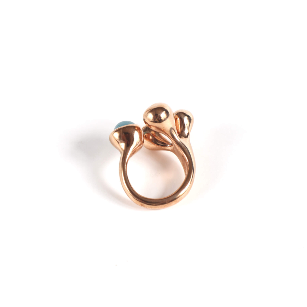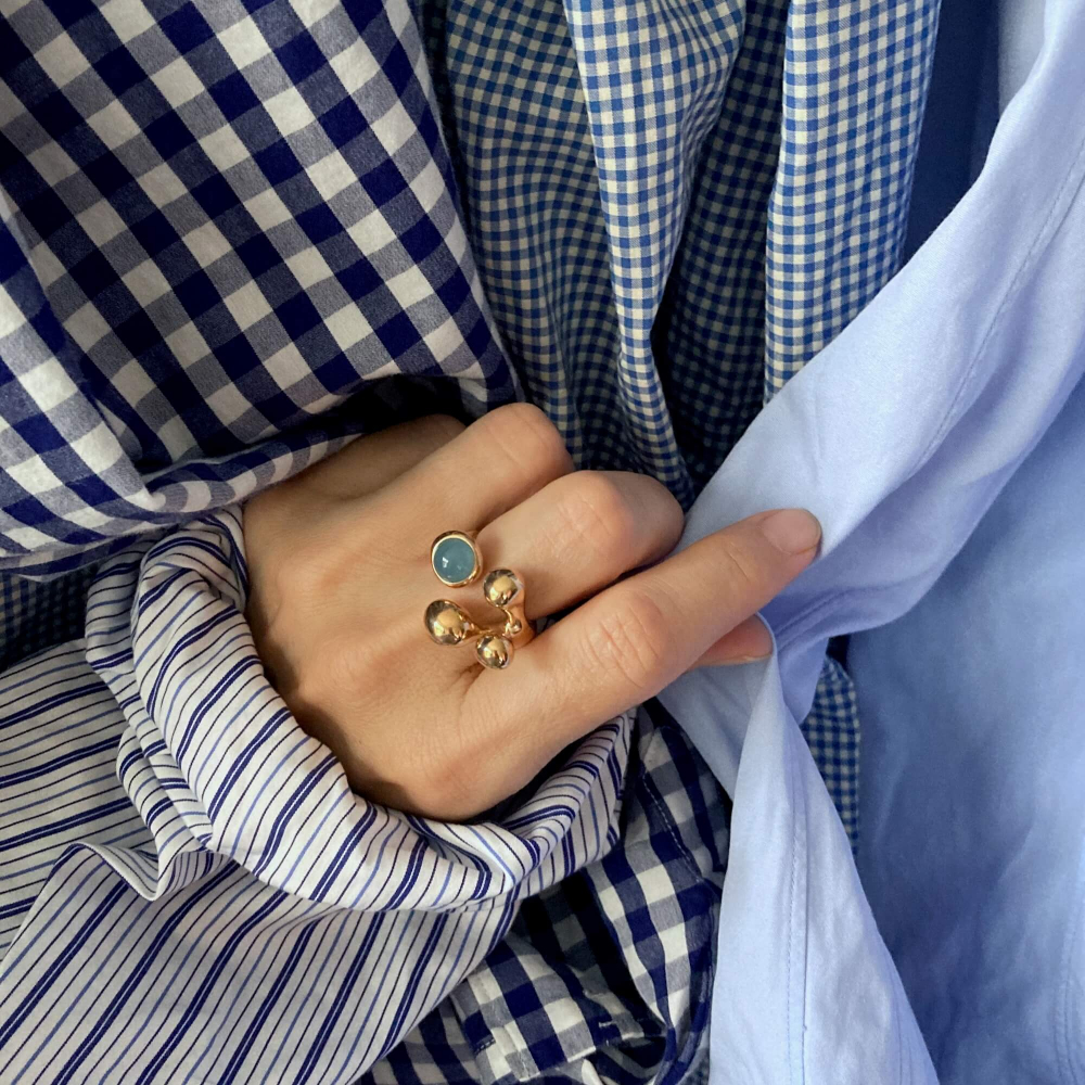 瑞々しいブルージェイドは、“ピスティーリ” ラインの愛らしい粒々ととても似合います。柔らかな印象を持つリングは、小さめの手指にちょうど良いサイズバランスです。