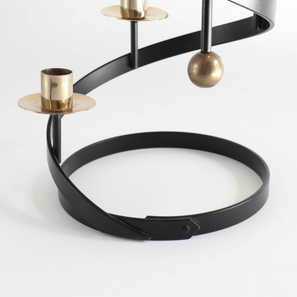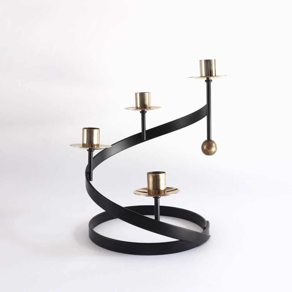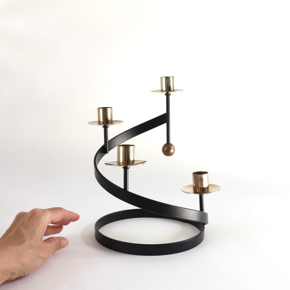 アールデコを経過したモダニズムの時代を、絶妙に表現したこのスパイラル型の燭台。真鍮と黒の対比に、今的な空気を感じます。聖的と言うより、アーティーな軽快さを兼ね備えたオブジェとして貴重な作品です。