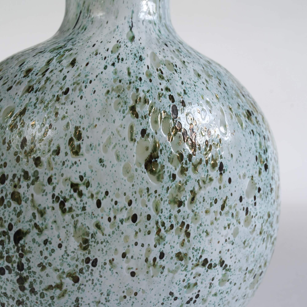 表面に触れると、クレーターのように凹凸があります。白の間から除く緑などの大地の色彩を、多層的な表現で見せてくれる作品です。