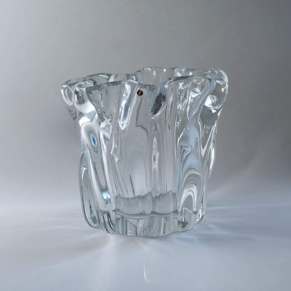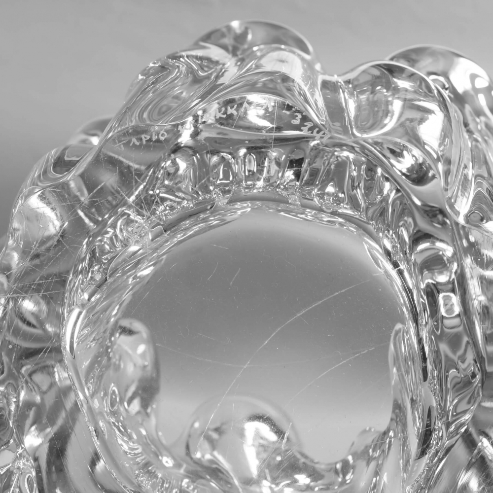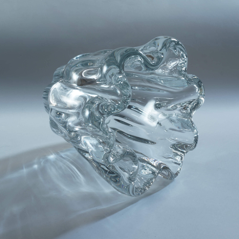 こちらはタピオ・ヴィルカラが最初期の1948年にデザインしたアートガラス、"Kaivolan"、訳して”木の切り株”。分厚く透明度の高いクリスタルガラスを贅沢に使い、特別なモールド(型)に吹き込むことで生み出されたもので、1951年のミラノのトリエンナーレで初めて発表されました。