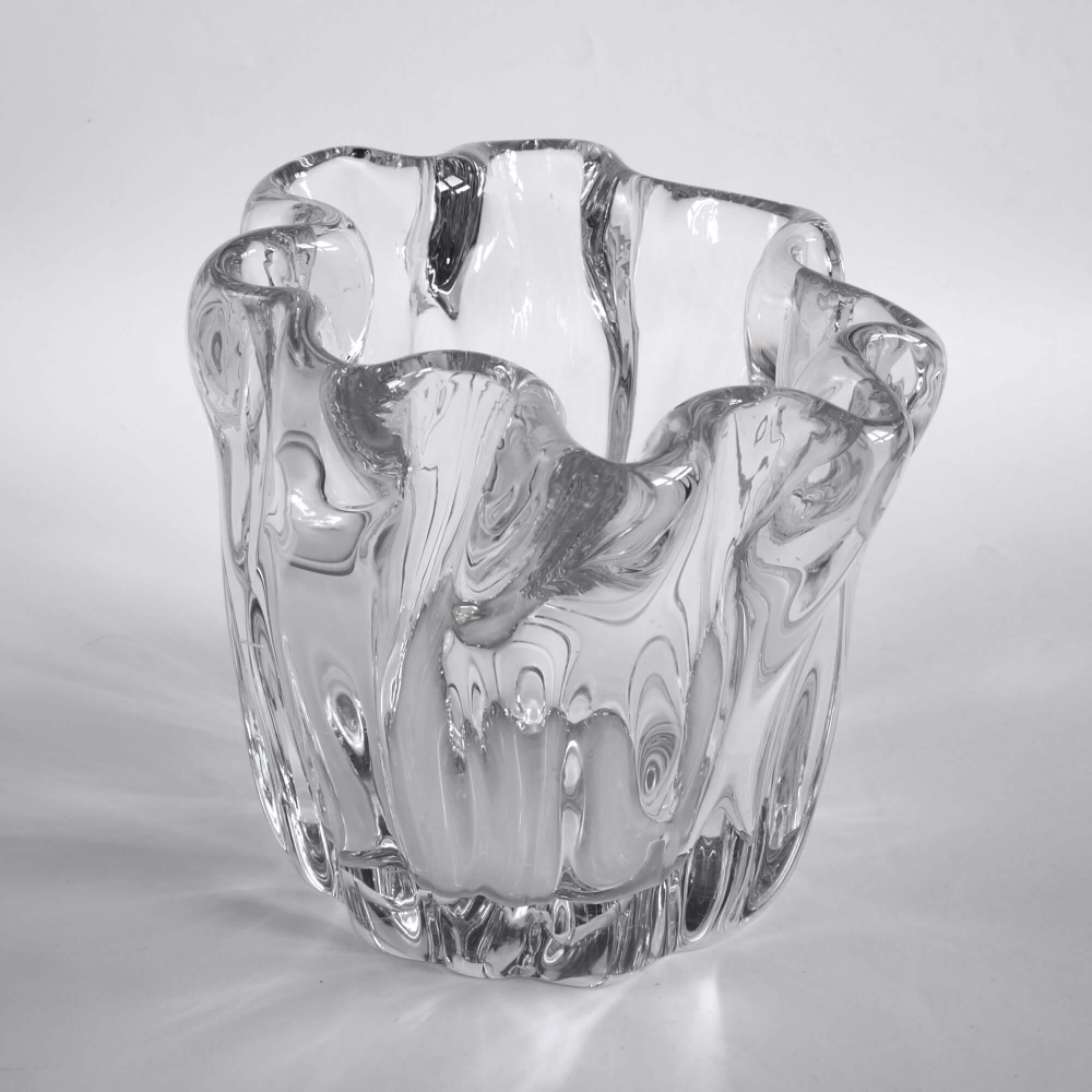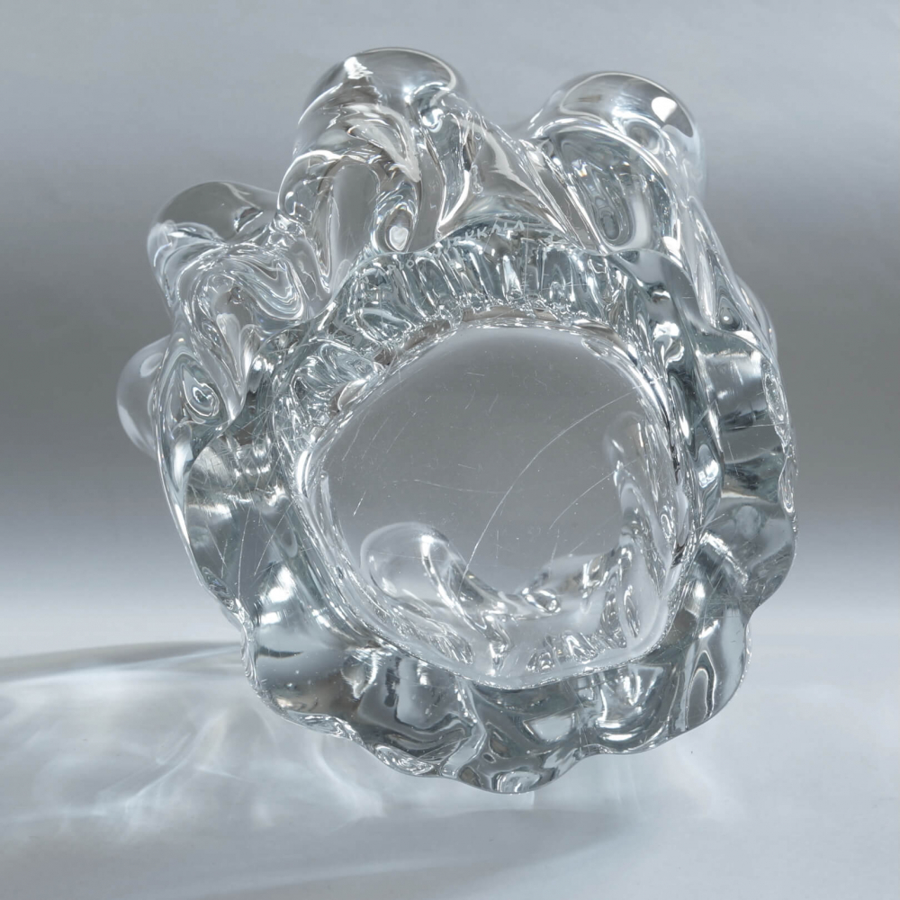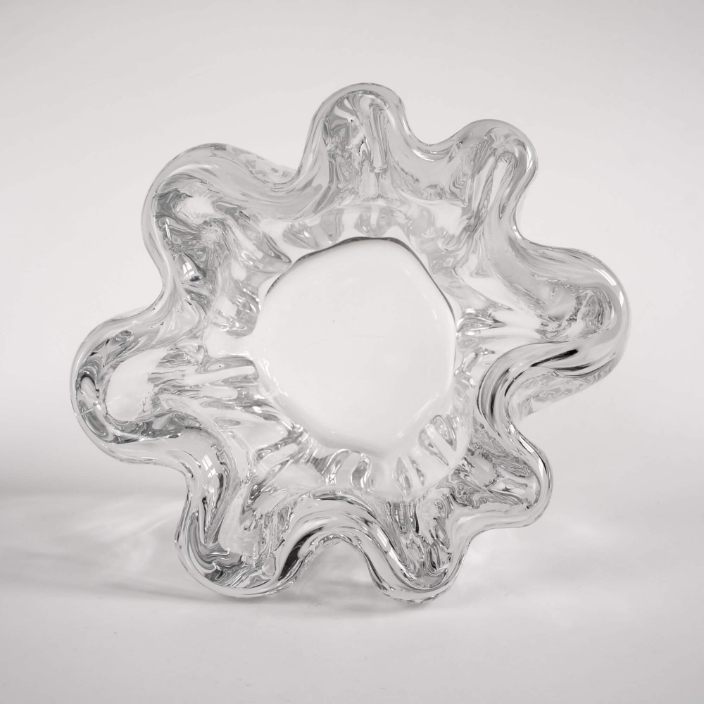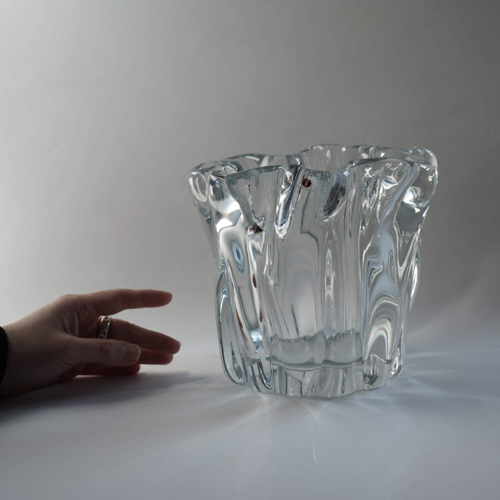 こちらはタピオ・ヴィルカラが最初期の1948年にデザインしたアートガラス、"Kaivolan"、訳して”木の切り株”。分厚く透明度の高いクリスタルガラスを贅沢に使い、特別なモールド(型)に吹き込むことで生み出されたもので、1951年のミラノのトリエンナーレで初めて発表されました。
